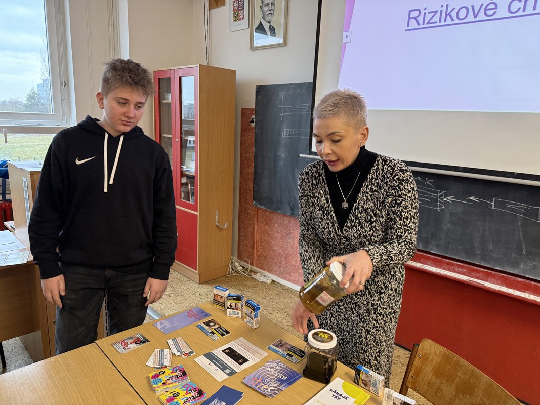 Od 11. do 24. února 2026 absolvovali žáci tříd KP1, TEI1, TE2, ZI2, KPM3, HA1, HB1, UKE1 a K2 cyklus besed na téma Rizikové chování, které vedla MUDr. Lenka Luhanová se svými kolegyněmi z Centra podpory veřejného zdraví při Státním zdravotním ústavu.