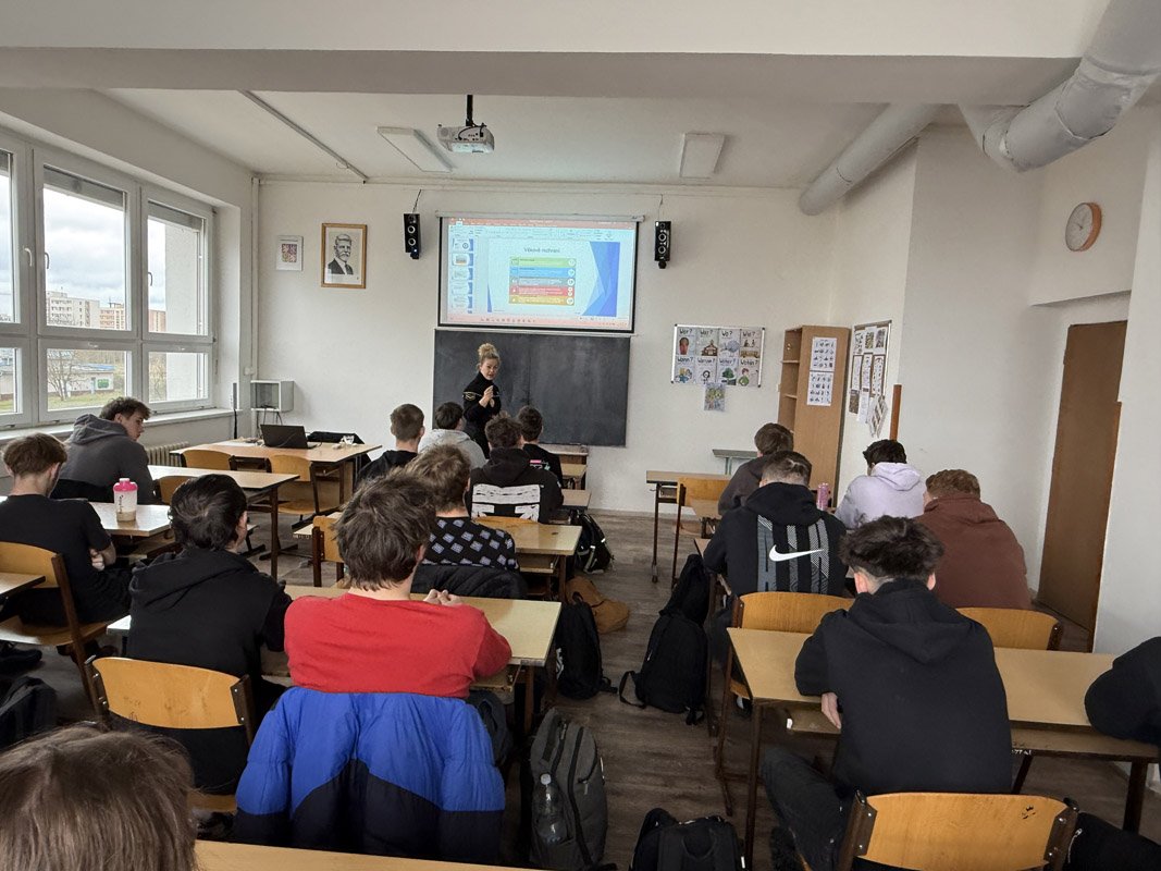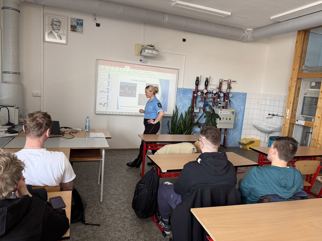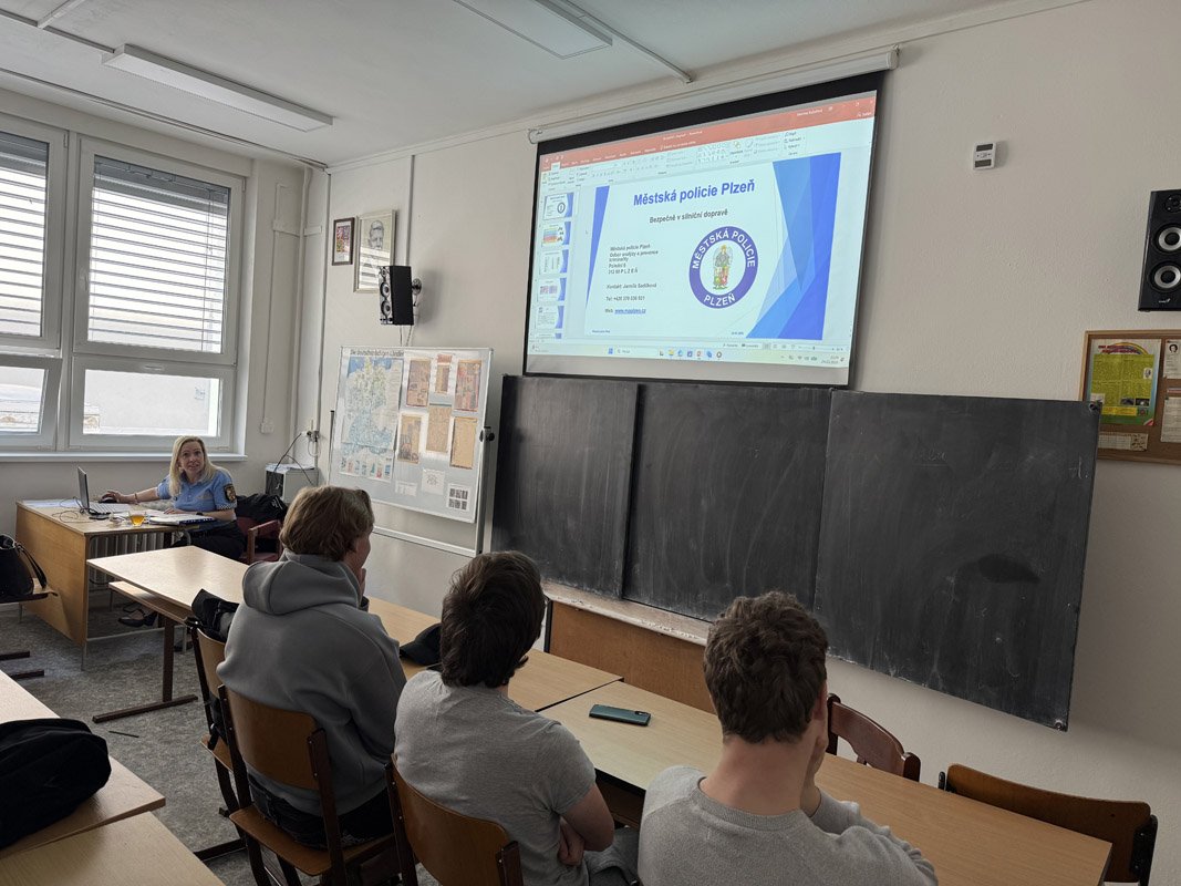 Na přelomu března a dubna 2026 absolvovali žáci tříd TE3, I3, TRI3, TRI2, TR3 a TE2 besedu na téma Bezpečnost v dopravě, kterou realizovala Městská policie v Plzni.
